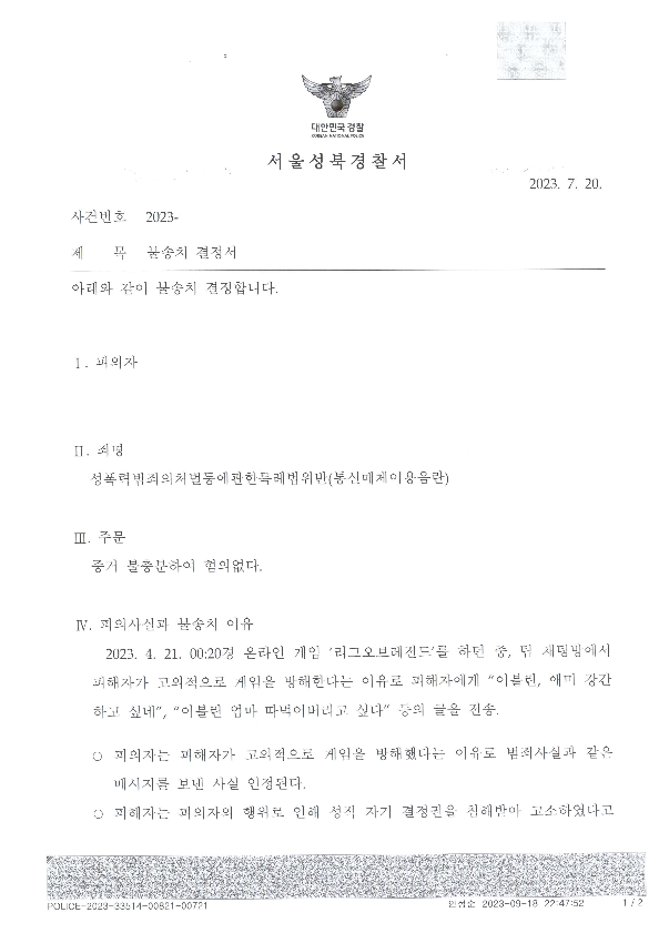 최근 게임 통매음 사건에서 무혐의나 무죄를 받는 것이 매우 쉬운 일이기에 딱히 해결사례라고 할 만한 사건도 아니지만, 게임 통매음 사건이 어느 정도 마무리 되어 가는 시점이기에, 변호사가 자기 홍보한다는 생각은 하지 않을실 것 같아서 해결사례로 올리게 되었습니다.