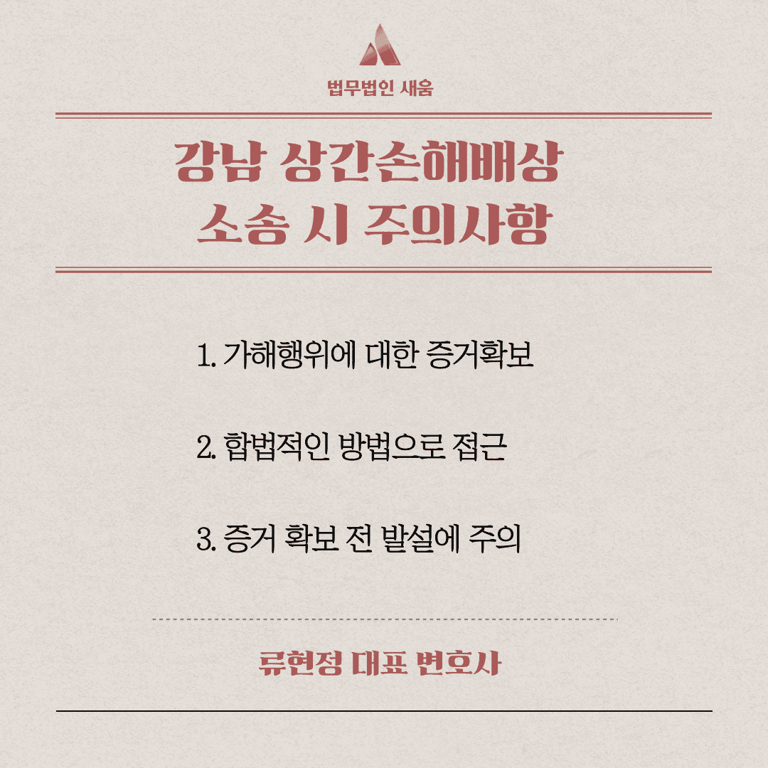 민사소송의 경우 본인이 스스로 피해를 입증하고 그에 따른 청구를 해야 합니다. 그렇기 때문에 강남 상간손해배상 소송의 경우에도 본인이 직접 외도의 증거를 확보해야 하는데요. 단순히 상간자와 배우자와의 부정행위에만 초점을 맞출 것이 아니라 상간자가 배우자를 만날 때 기혼상태임을 알고도 만났다는 것을 입증해야 합니다. 연인과 같은 사이를 유지했다고 하여도 정작 기혼자임을 모르고 만났을 경우 불륜으로 볼 수 없으며 이 경우 상간자가 아니라 또다른 피해자일 뿐이기에 보상을 요구할 수 없습니다. 따라서 명확한 증거를 기반으로 하여서 불륜관계가 맞다는 것을 입증할 수 있도록 해야 합니다.