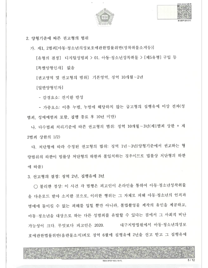 의뢰인은 인터넷 등에서 아동청소년이 자위하는 동영상 수십개를 다운로드하는 방법으로 소지하여 기소되었습니다. 의뢰인은 동종 전과로 집행유예를 받은 적이 있어 매우 불리한 상황이었습니다.
