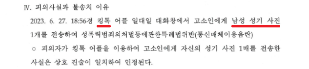 A씨는 2023. 6. 27. 18:56경 랜덤 채팅 어플리케이션 '킹톡'에서 여느 때와 마찬가지로 전혀 모르는 B씨에게 성기 사진을 전송하였습니다.