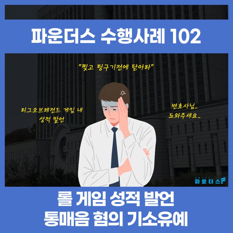의뢰인은 친구와 롤 게임을 하던 중 같은 팀이었던 고소인과 말다툼이 발생하였고 채팅창을 통해 고소인에 “찢고 팅구기 전에 닫아라”와 같은 발언을 하였습니다. 의뢰인은 친구와 함께 고소인을 향해 성적 수치심을 유발하는 발언을 한 것으로 통신매체이용음란 혐의로 고소를 당하였고 수사를 앞둔 시점에서 파운더스 변호인의 조력을 요청하게 되었습니다.