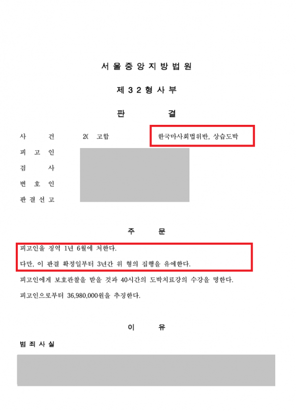 의뢰인은 한국마사회 소속 직원으로서 말 정보와 관련된 부정한 청탁을 받고 금품을 수수하고, 인터넷 불법 스포츠토토 사이트에서 상습 도박을 하였다는 혐의로 한국마사회법위반 및 상습도박죄로 구속되어 재판을 받게 되었습니다.