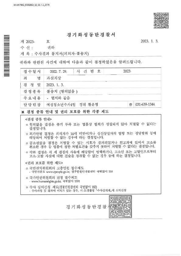 본 변호인의 의견대로 피의자는 불송치로 사건을 잘 마무리 할 수 있었습니다.