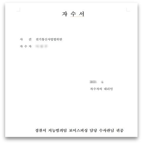 그래서 이 사건은 수임 직후 거의 하루 이틀만에 모든 자료를 다 정리해 자수서를 작성하고, 주말 오후에 제가 직접 경찰서로 가서 담당 수사관님과 면담을 한 후 자수서를 접수시켰습니다.