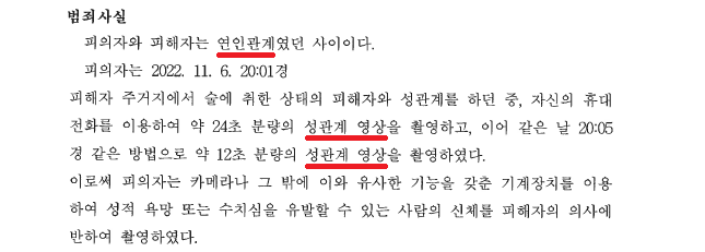 A씨는 2022. 11. 6.경 여자친구 B씨와 술을 마시고 2차례에 걸쳐 성관계를 하면서 그 모습을 동영상 촬영하였습니다.