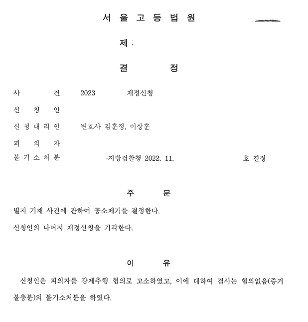 수사기관의 처분이 법리적으로 부당하다고 판단하였고,의뢰인에게 재정신청 절차에서 수사기관의 부당한 처분에 다툴 것을 제안하였습니다.