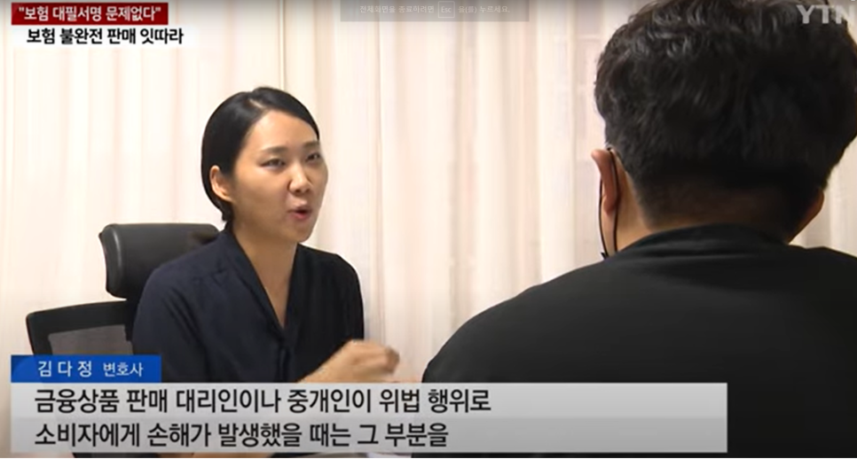 당시, A는 B에게 상품에 대한 구체적인 설명 및 일체의 서류도 받지 못하였고, B의 강요에 의해 해피콜 통화 또한 이루어졌습니다.보험설계사 B는 보험회사 이름으로 선이자 명목의 금원도 A에게 송금하는등 철저히 A를 기망하였습니다. 이후 B는 추가적인 상품 가입도 권유하였으나 이상함을 느낀 A가 사안을 파악하려 하자 B는 연락두절이 되었으며, B의 회사 지점장 C또한 사건을 은폐하고 오히려 A에게 민원 취하를 종용하는 모습을 보였습니다.