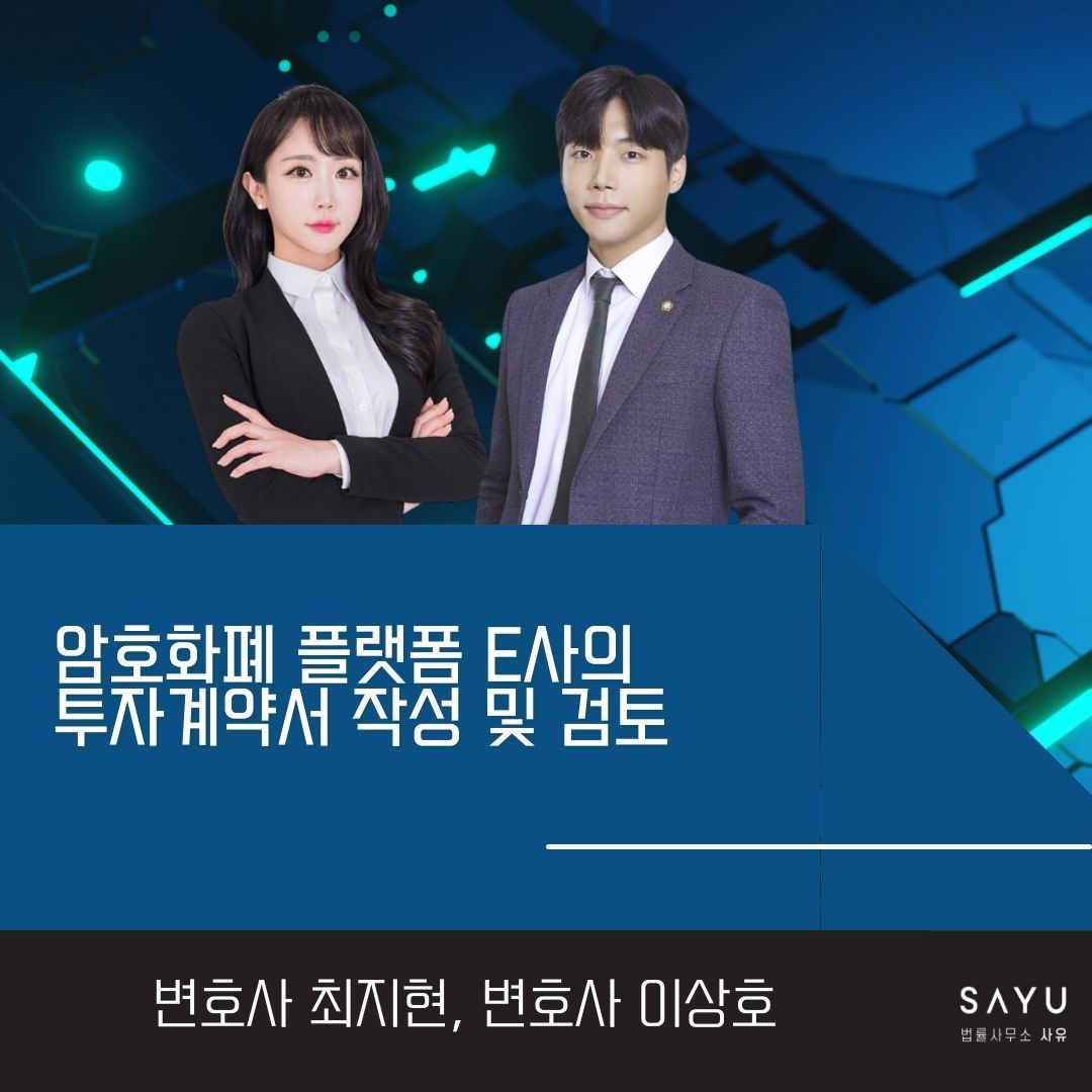 법률사무소 사유 최지현 변호사, 이상호 변호사는 암호화폐 플랫폼 E사가 아시아 최대 크립토 퀀트 스타트업 프레스토랩스로부터 투자를 유치하는데 필요한 법률 자문을 제공하였습니다.