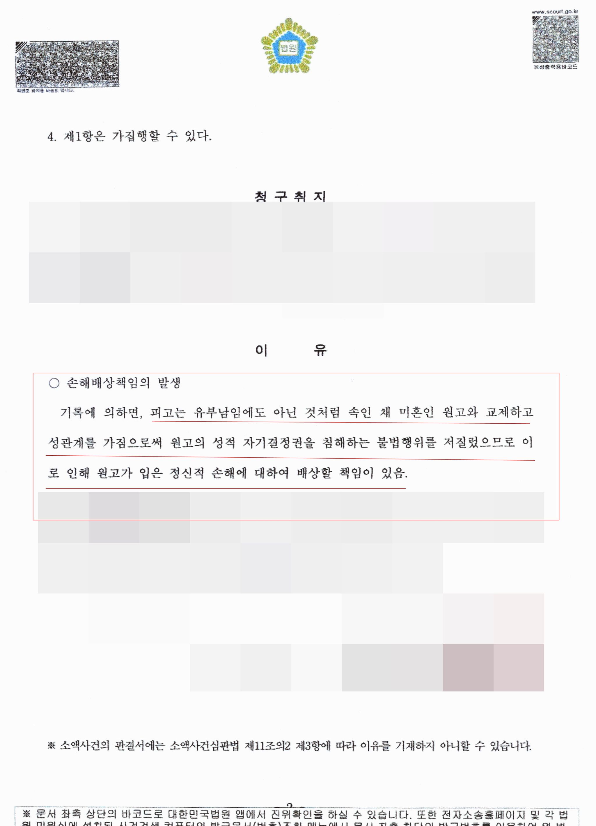 당연히 유부남인 것을 속이면 안된다는 상식이 반영된 결과이나. 실제 판결 사례는 많지 않다.