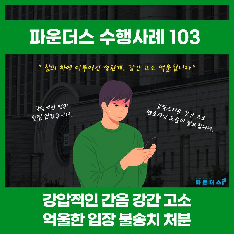 고소인과 연인 관계를 이어 오던 의뢰인은 갑작스럽게 강간죄로 고소를 당하여 파운더스 변호인의 조력을 요청하였습니다.