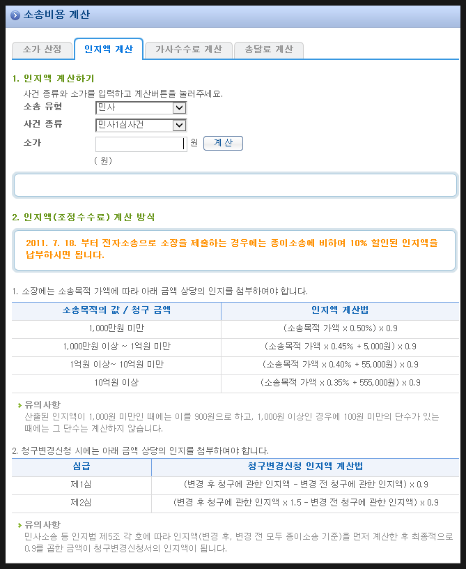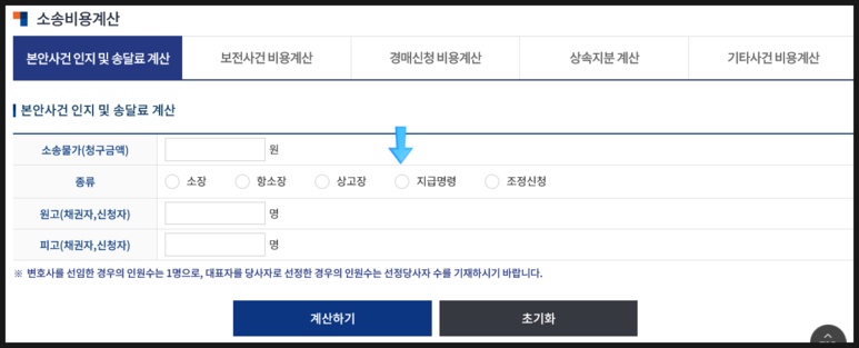 [소송비용 자동계산 방법]