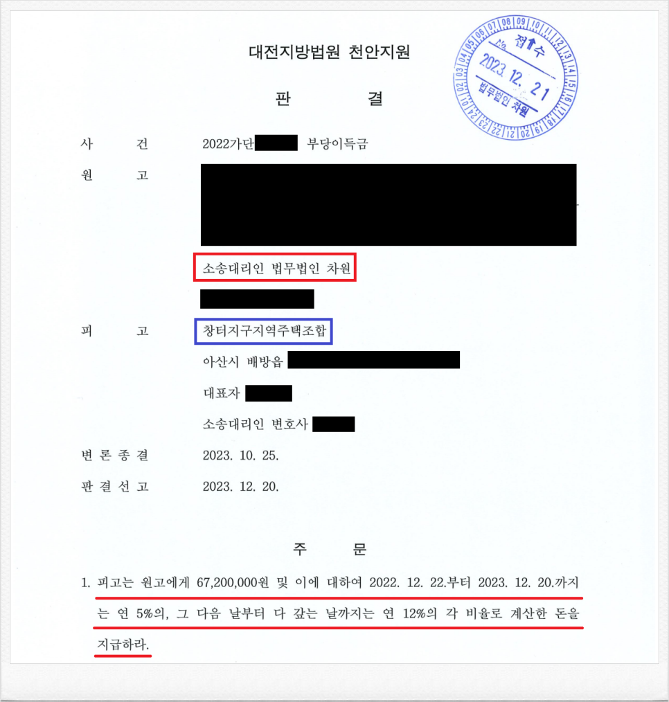 결국, 재판부는 이러한 저의 주장을 받아들였고, 피고 측은 의뢰인에게 기지급 받은 금원 및 이에 대한 지연손해금을 지급하라는 내용의 판결을 이끌어 내었습니다.