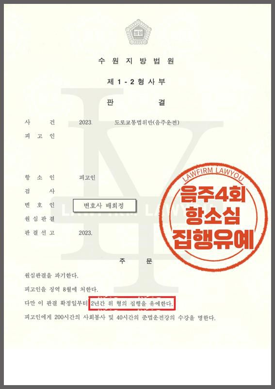 본 사례는 의뢰인이음주운전 전력 4회로 원심에서 징역 8개월 실형을 선고 받아 진행하게 된 사건입니다.