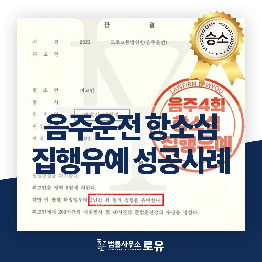 의뢰인의 사건을 맡은 로유의 변호인들은 음주운전 전력이 4회로 죄가 가볍지 않지만, 당시 아무런 사고가 없었고, 움주수치가 낮은 점, 특히 검찰소송기록을 여러 차례 검토하여 사건 당일이 아버지의 생신이었던 점을 가족관계증명서에서 찾아 음주하게 된 안타까운 사정과 홀로 계신 할머니를 남은 생 동안 안아드릴 수 있게 끔 한번만 기회를 달라고 하며 의뢰인의 반성문과 기타 양형자료들을 5번의 변호인의견서를 통해 강력히 호소하였습니다.