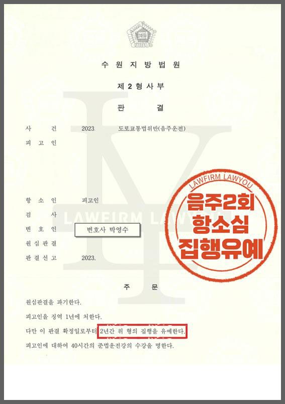 본 사례는 의뢰인이 음주운전 전력 2회로 원심에서 징역 1년 실형을 선고 받아 진행하게 된 사건입니다.