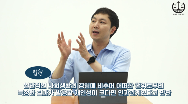 법원에서는 일반적인 사회생활의 경험에 비추어 어떠한 행위로부터 특정한 결과가 발생할 개연성이 크다면 인과관계가 있다고 봅니다. 즉 사회통념에 비추어 인과관계가 인정될 수 있는지를 판단하는 것이지요.