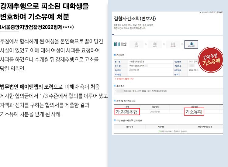![[기소유예] 술집 강제추행 합의 이끌어 기소유예](/_next/image?url=https%3A%2F%2Fd2ai3ajp99ywjy.cloudfront.net%2Fuploads%2Ftitleimage%2Foriginal%2F5c6f68e289f37c09d00acb6e-original.jpg&w=3840&q=75)