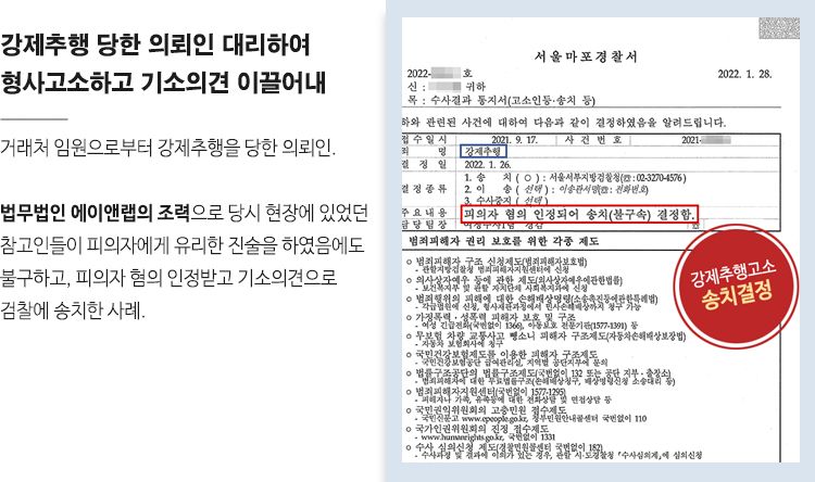 그런데 회식 당시 거래처의 다른 사람들도 피의자의 강제추행을 목격하고 의뢰인을 돕겠다는 입장을 밝혔으나, 실제 고소장을 접수하자 임원이라는 직급 때문인지 피의자에게 유리한 쪽으로 진술을 바꾸는 등 어려움이 있었습니다.