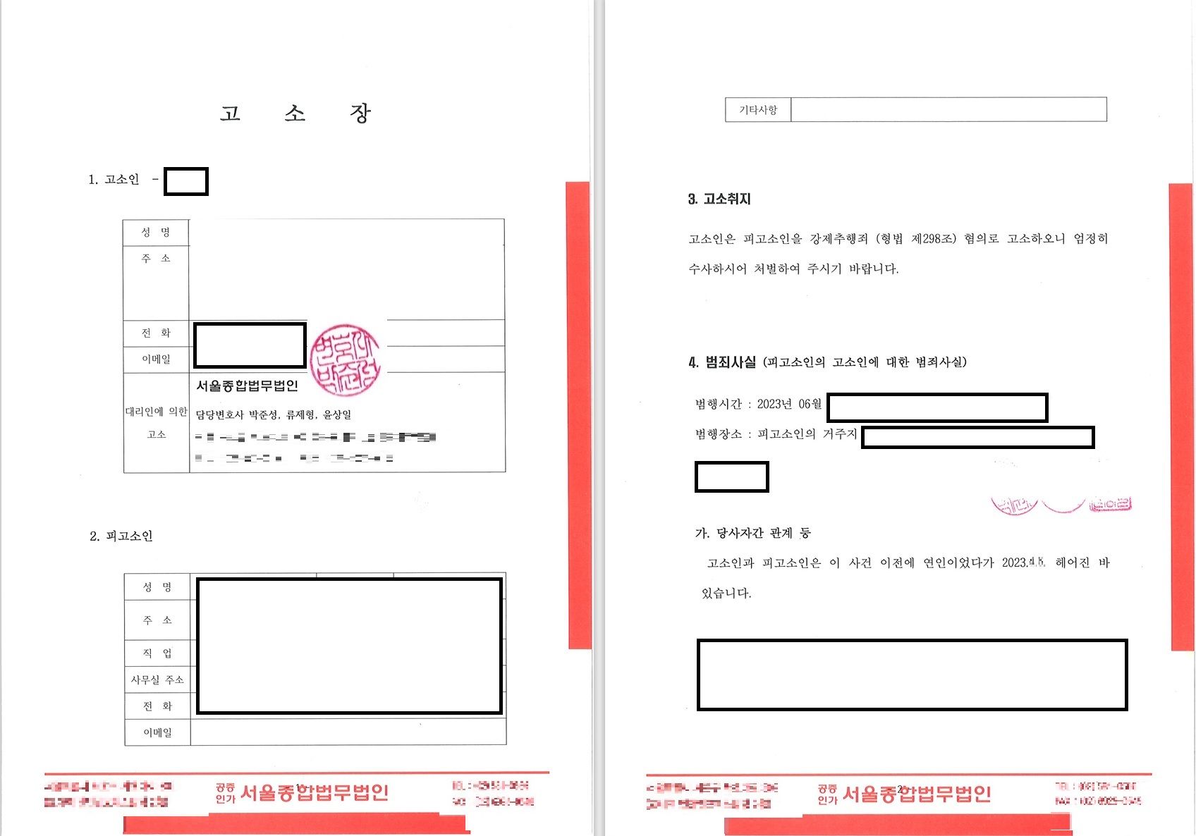 의뢰인님은 상담받았던 여러 변호사님들 중 저를 선임하셨고, 제가 선임된 시점은 이미 피해를 입은 지 한달이 조금 안되게 지났기 때문에 신속하게 고소장 작성부터 시작하게 되었습니다.