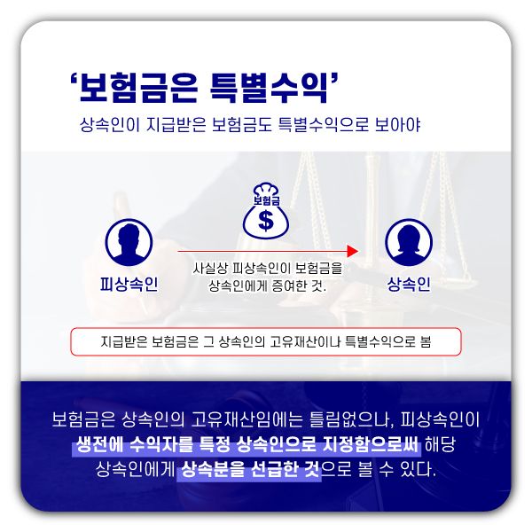 부모님이 돌아가시게 된 이후에 자녀(공동상속인)들은 상속재산에 대하여 협의가 원만하게 이루어지지 않을 경우 상속재산분할심판청구나 유류분반환청구 소송을 제기하는 등 분쟁이 발생하게 되는데, 이때 그 보험금의 수익자가 특별수익한 것으로 되는지에 대해서 문제가 되기도 합니다.