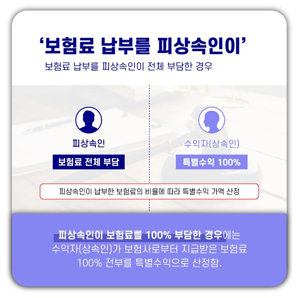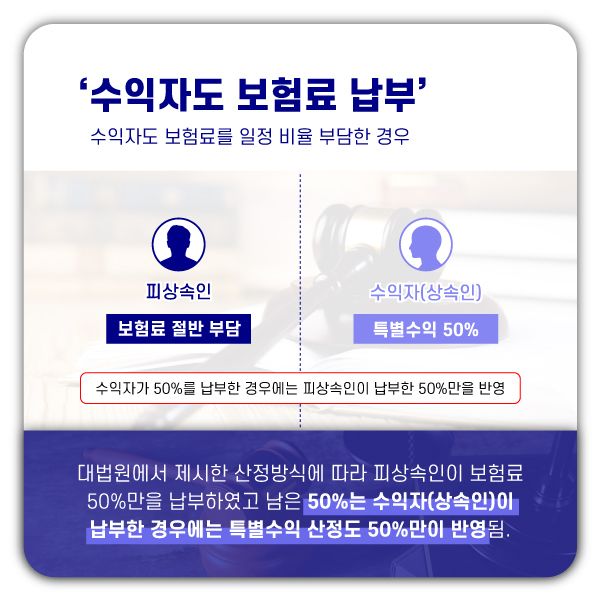 - 피상속인과 수익자(상속인)이 50%씩 보험금을 납입한 경우