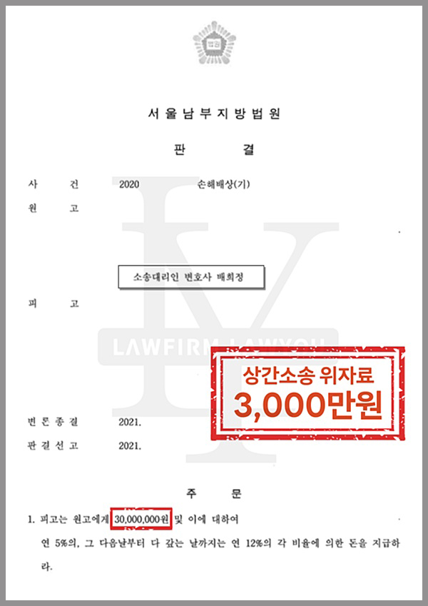 본 법률사무소는 이러한 쟁점을 분명히 집었고 상간녀의 상간 사실을 입증할 수 있는 자료를 수집하고 적극적으로 변론하는 노력을 통해 본 사안에서 '피고는 원고에게 3000만원을 지급하라'는 판결을 받을 수 있었습니다.