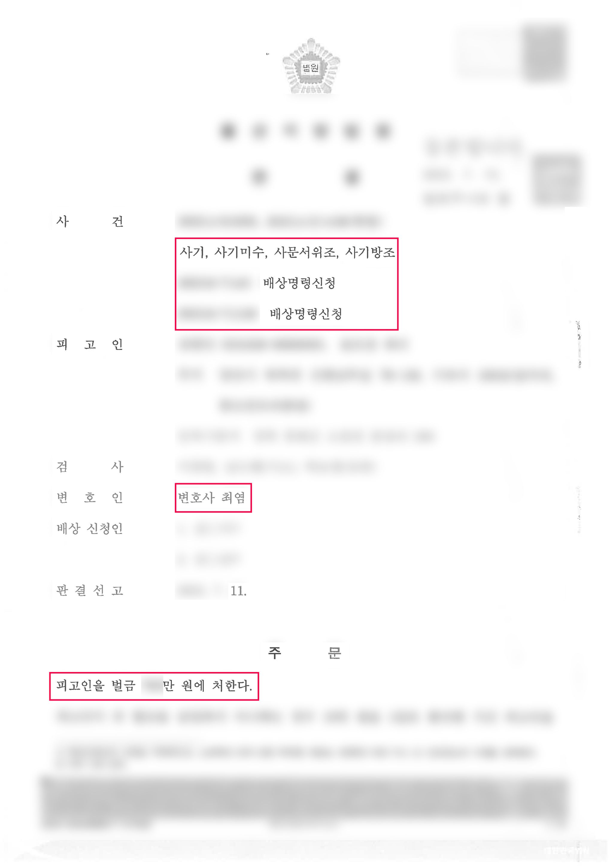 검사의 징역형 구형에 법원은 피고인이 피해자들과 원만히 합의하여 피해자가 더이상 피고인의 처벌을 원하지 않으며 한 피해자는 미수에 그친 점, 초범인점 등 이 사건 수사 및 재판과정에서 보인태도, 변호인의 변론 등을 기타 정상을 참작하여 의례적으로 보이스피싱 범죄를 저지른 피고인에게 벌금형을 선고하였습니다.
