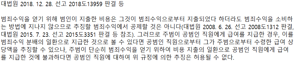 안녕하세요. 오늘은 대법원 판례를 소개드리면서 추징 선고를 막을 수 있는 경우에 대해 알려드리려 합니다.