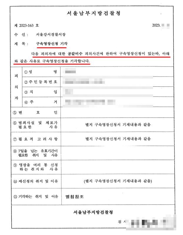 그런데 사후적으로 알고보니 경찰은 의뢰인에 대하여 구속영장까지 신청을 했었습니다.