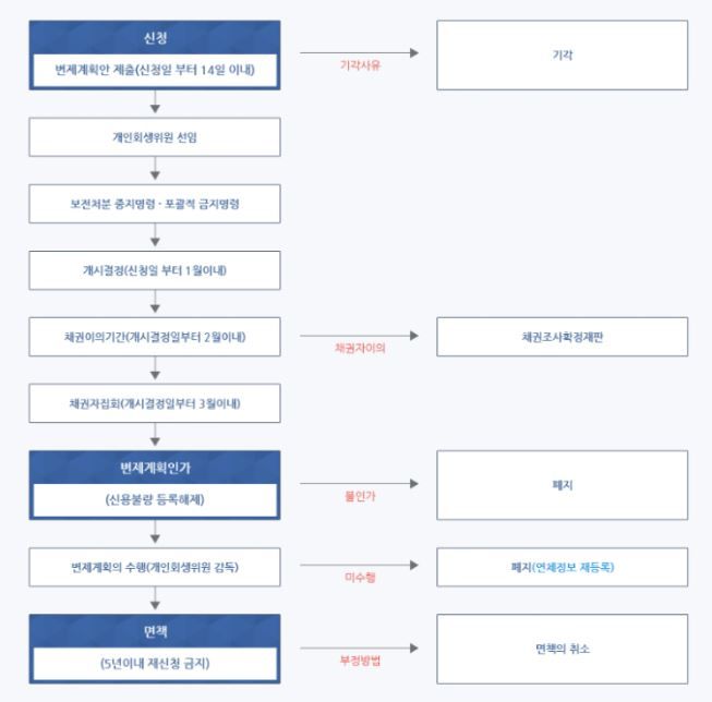 과도한 채무로 지급불능 상태에 있는 개인채무자가 근로, 사업소득 등으로 일정한 소득을 얻고 있으며 장래에도 지속적으로 수입을 얻을 수 있는 경우 3년 내지 5년 간 일정한 금액을 변제하면 나머지 채무를 면제받을 수 있는 절차입니다. 쉽게 말해서 월 갚아야 할 변제액이 수입보다 많거나 혹은 월 납입금을 변제하면 생활이 어려운 경우 '채무자의 회생 및 파산에 관한 법률'에 의거하여 최저생계비용을 제외한 나머지 가용소득으로 채무를 일정 기간동안 변제하면 나머지 채무는 갚지 않아도 되는 제도로서 채무자에게 일방적으로 유리한 제도라고 할 수 있습니다.