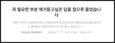 저희 믿고 연락을 주시는 만큼, 그에 부끄럽지 않도록 올바른 해결책을 제시해 드리도록 하겠습니다.