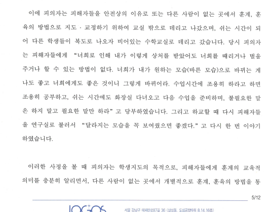 범행 사실을 모두 인정하되, 잘못된 행동을 하였지만 그 목적은 아동을 훈계 및 지도하려는 것인 점, 피고인은 진지한 반성을 하고 있고 초범인 점, 주위에서 선처를 바라는 탄원서를 제출한 점 등을 적극 변론하여 선처를 구함
