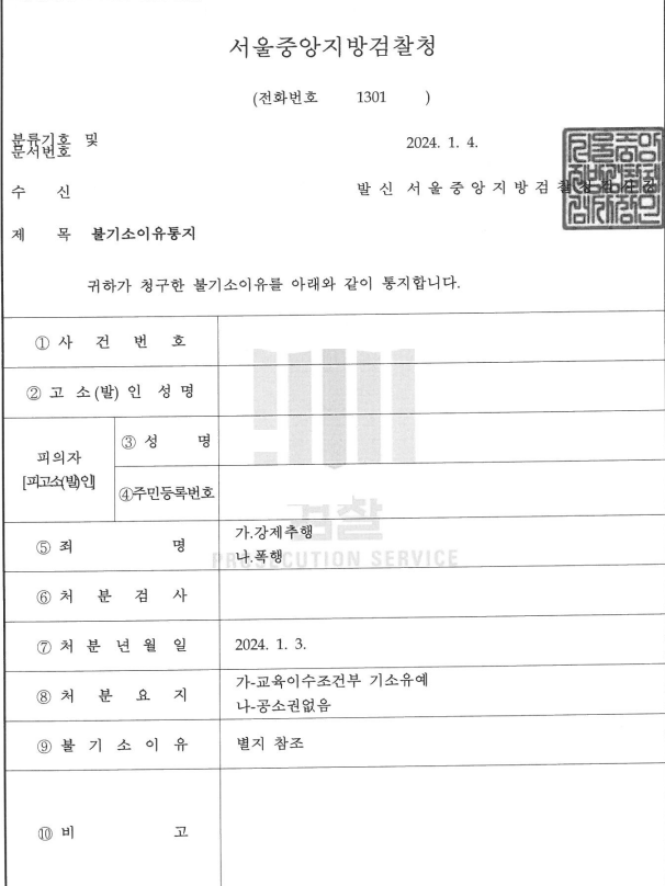 이 사건 담당 검사는 피의자(의뢰인)에게 피해자가 피의자(의뢰인)에 대한 처벌을 원하지 않고 초범인 점 등의 사정들을 감안하여 의뢰인에게 기소유예 처분을 하였습니다.