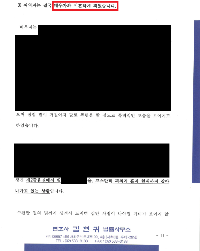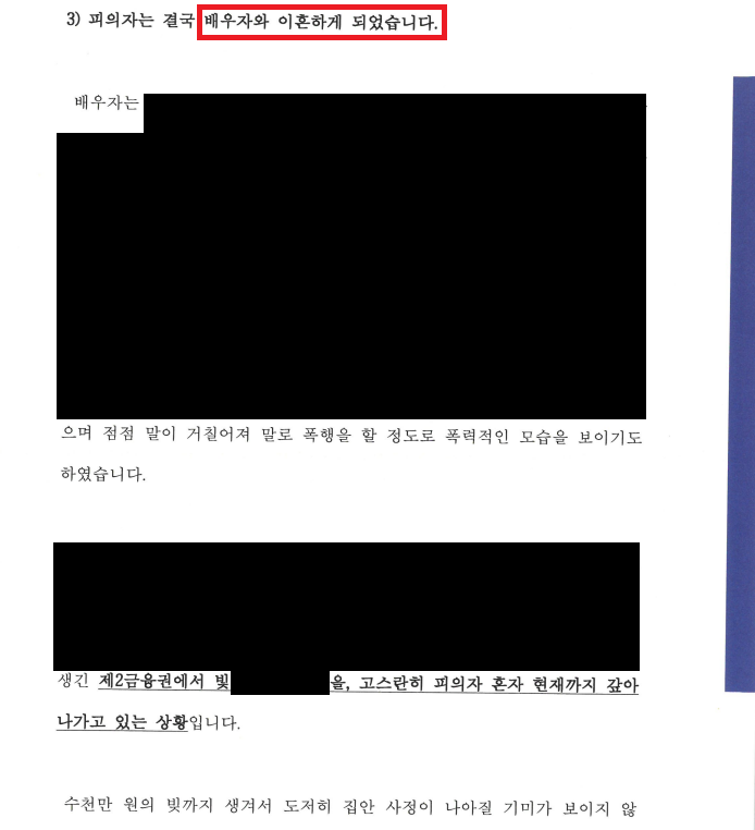 - 설상가상으로 2023년 중순, 오랜 기간 투병 생활을 해오던 배우자와 이혼까지 하게 됨