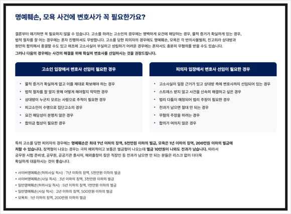 저희가 수많은 명예훼손 사건을 전담하며 다수의 무혐의를 이끌 수 있었던 이유가