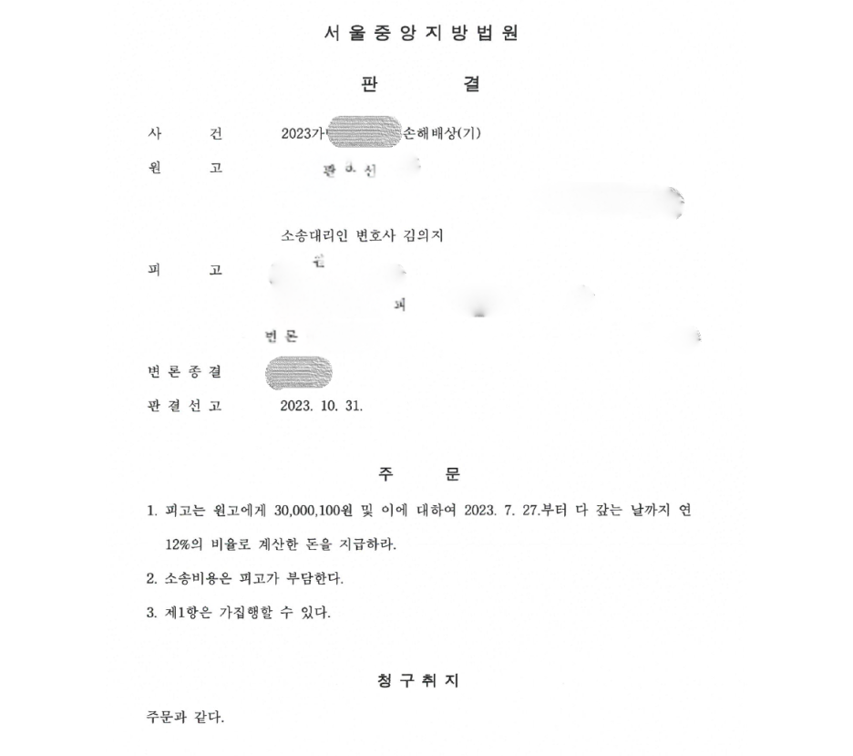 결과적으로, 당초 청구한 3,000만원 전부가 인용되는 만족스러운 결과를 얻을 수 있었습니다.