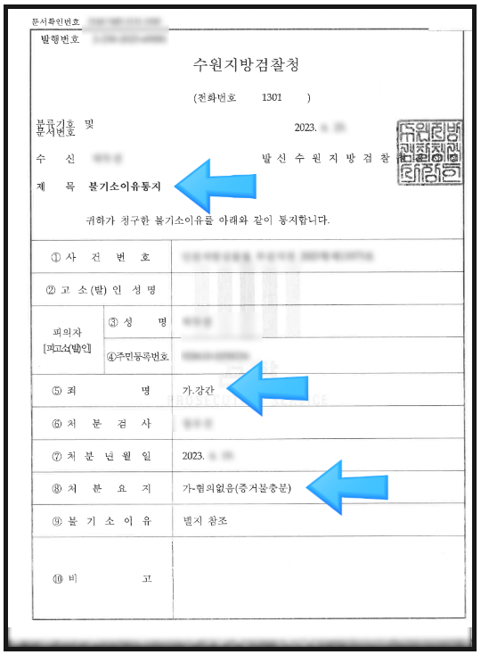 그 결과, 검사는 의뢰인에게 혐의없음으로 불기소 처분을 내려주었습니다.
