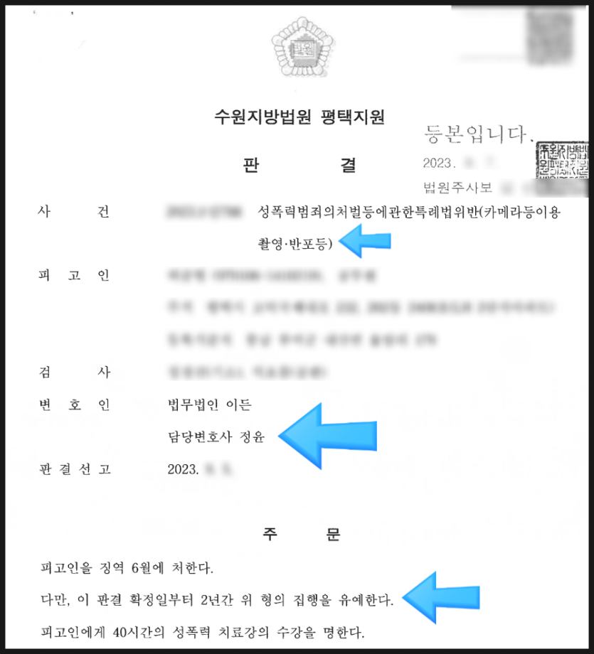 안녕하세요. 형사전문변호사 정 윤입니다. 오늘은 학교에서 학생들을 몰래 촬영한 혐의를 받은 의뢰인이 집해유예받은 사건에 대해 설명드리겠습니다.
