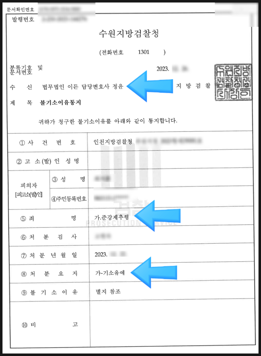이외에도 여러 양형 자료를 제출한 결과, 의뢰인은 준강제추행 혐의에 대해 기소유예 처분을 받게 되었습니다.