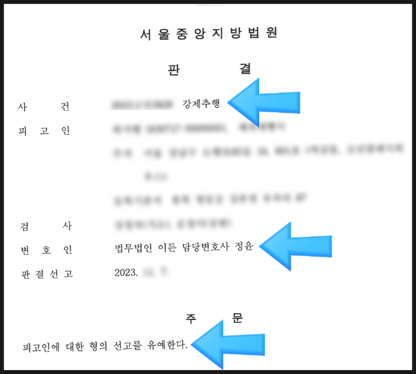 이외에도 초범이라는 점 등을 적극적으로 주장한 결과, 의뢰인은 선고유예 판결을 받을 수 있었습니다.