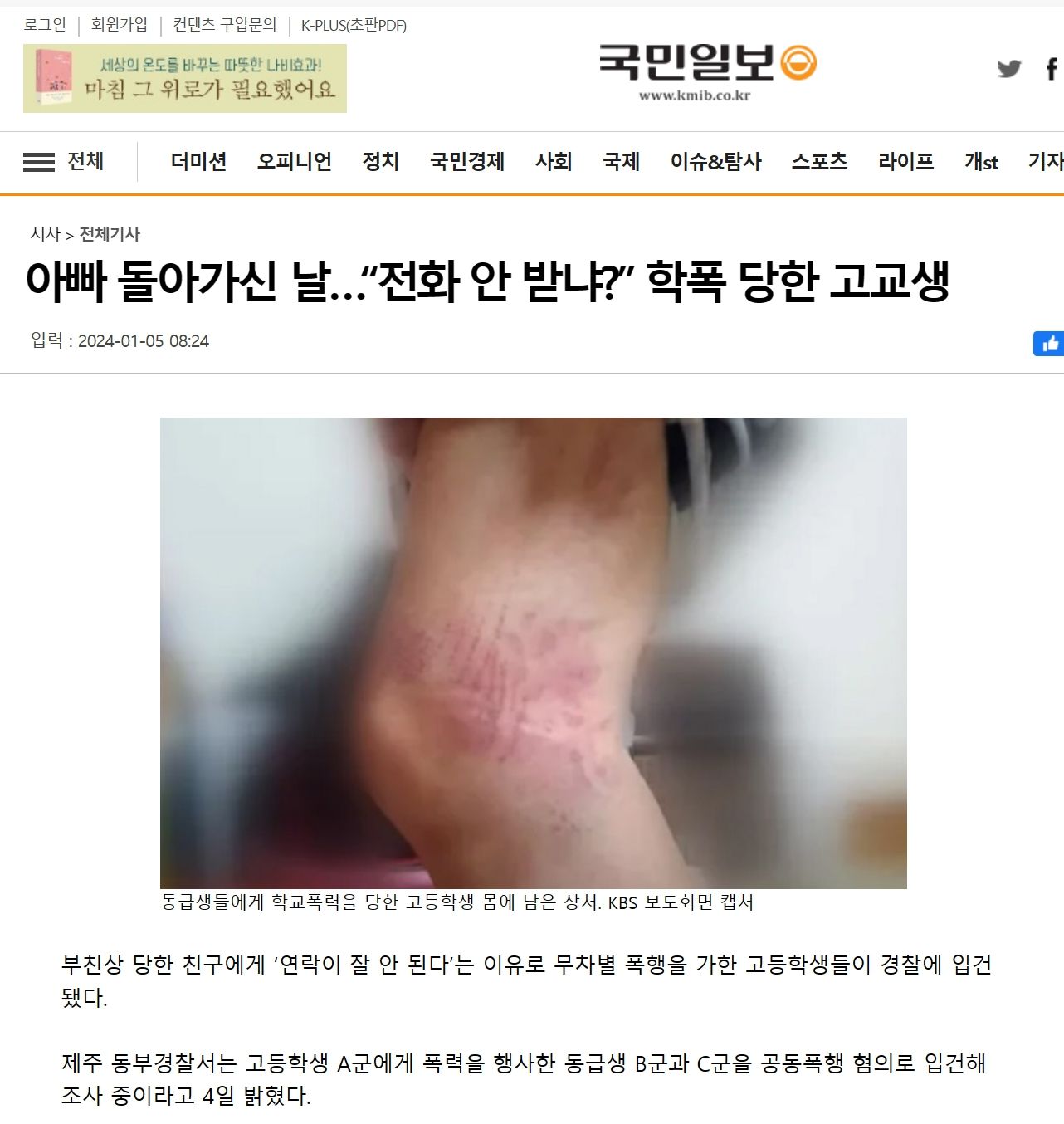 부친상 당한 동급생에게 학폭을 가한 사건이 보도되어