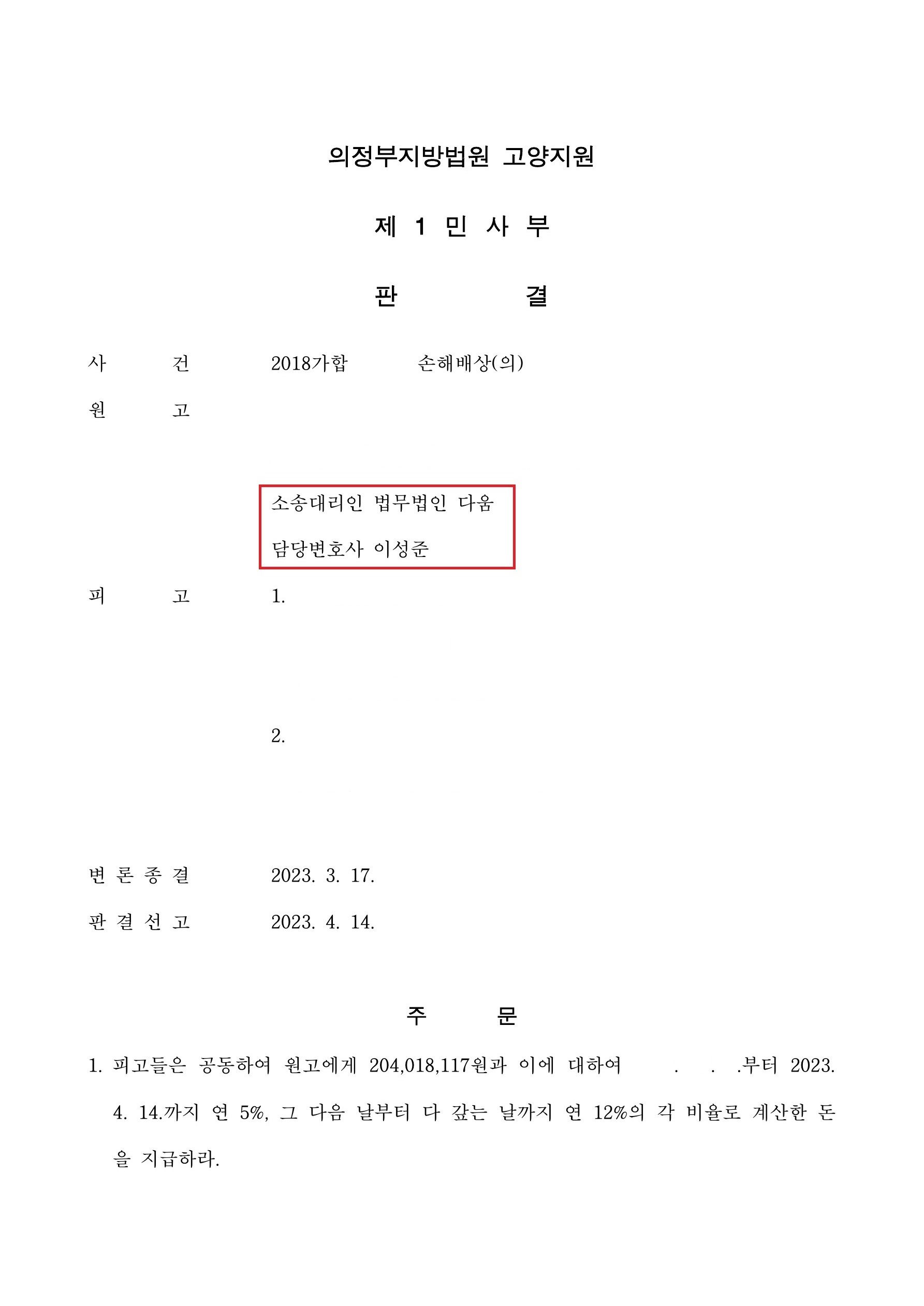 이성준 변호사의 위와 같은 노력으로 법원은 '병원 측이 환자에게 2억 여원을 배상하라'는 내용의 판결을 내렸습니다.