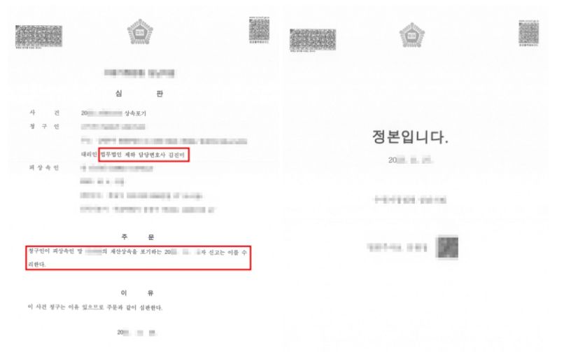 이번 황혼재혼 상속포기 사례의 의뢰인은 이혼소송이 진행중이였습니다. 별거 중 상대방이 이혼과 재산분할을 청구했는데요. 의뢰인과 상대방은 법률상 부부이며 각자 전혼자녀가 있고 모두 성인입니다. 이후 상대방이 이혼소송 진행 중에 사망하게 되면서 상속문제가 발생했는데요. 저와 상의 후 상폭포기 절차를 진행하게 되고 약 20일 만에 상속포기 결정문을 받게 됩니다.