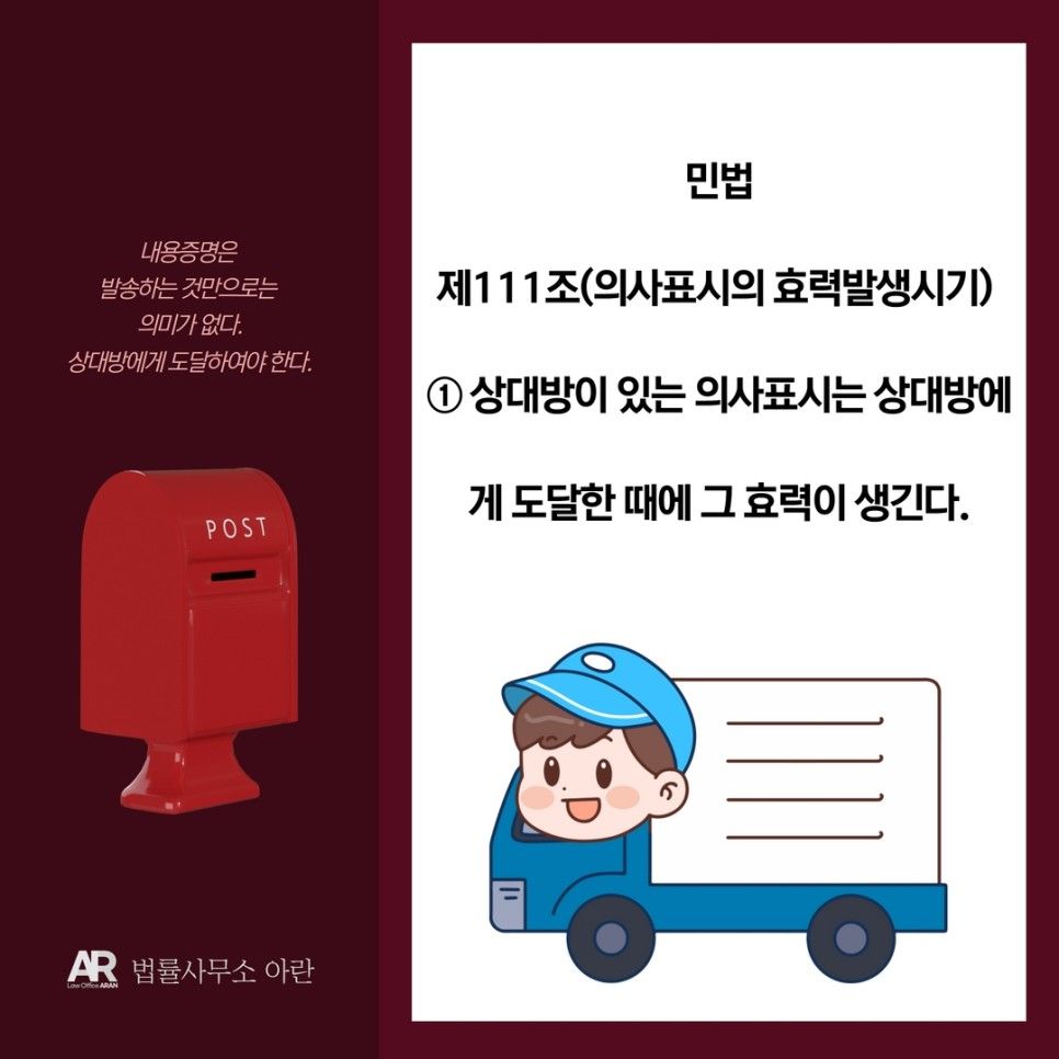 먼저 알아두셔야 할 점은 내용증명은 '발송'만으로는 아무런 의미가 없다는 점입니다. 내용증명은 상대방에게 '도달'하여야만 의미가 있습니다.
