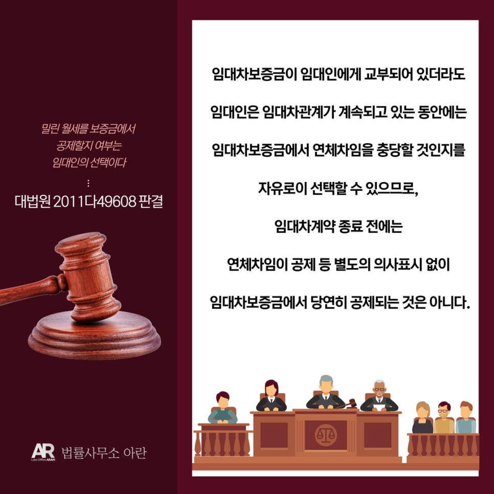 그러나 밀린 월세를 보증금에서 공제할지 아니면 세입자에게 청구할지 여부는 임대인의 선택사항이지 임차인이 이래라 저래라 할 수 있는 사항이 아닙니다.