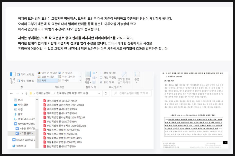 그리하여 명예훼손 사건을 특화하며 저희가 그간 수집한 데이터와 최신 판례를 근거로 그 기준을 정리해 드리겠습니다.