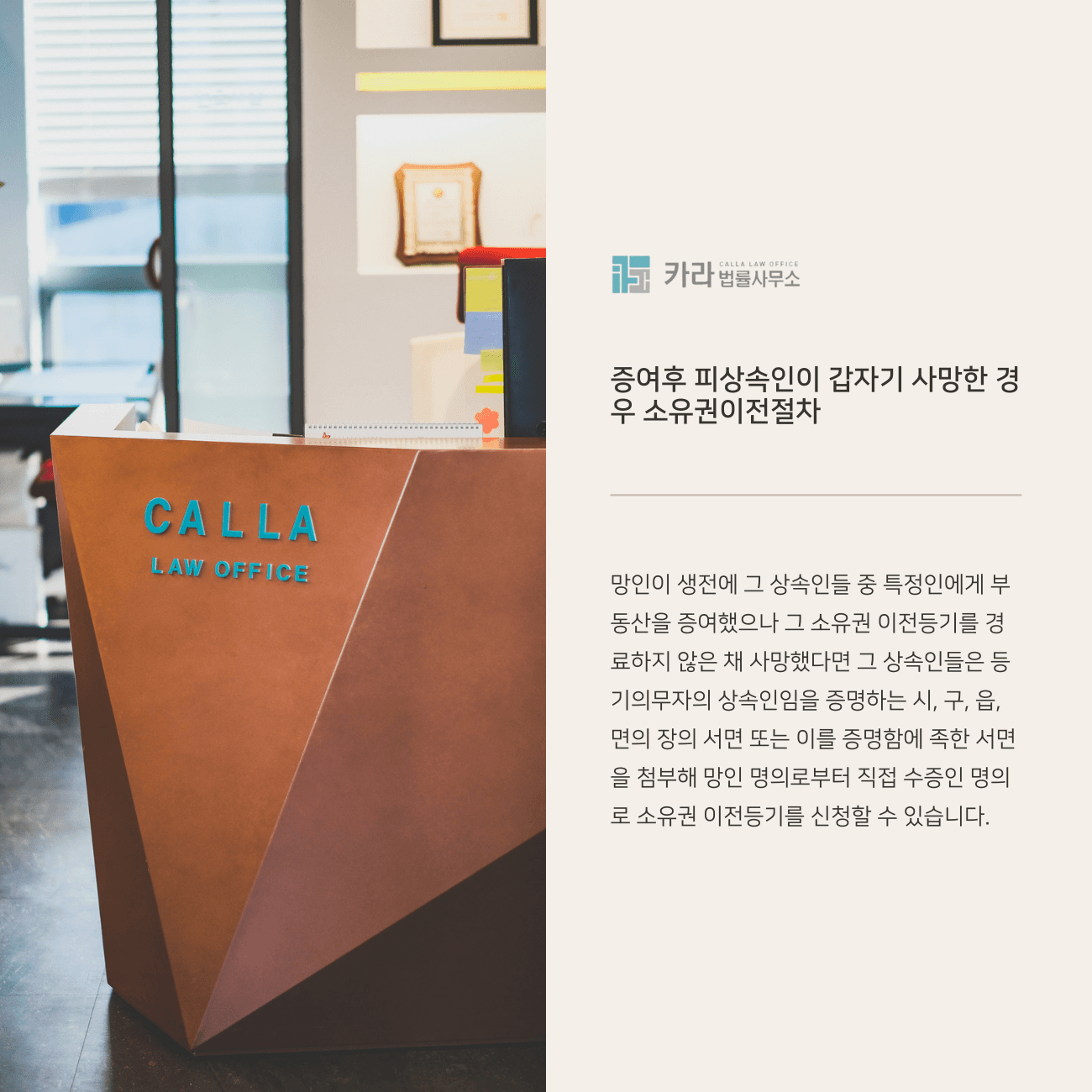 증여로 인정받게 된다 하더라도 명의는 여전히 망인의 이름으로 되어 있기에 어떤 식으로든 소유권 이전 절차를 진행해야 하는데요,
