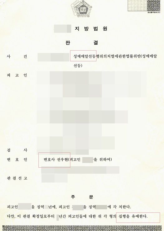 아래 사안은 성매매알선을 한 포주에 대해 집행유예를 받은 사안이다.