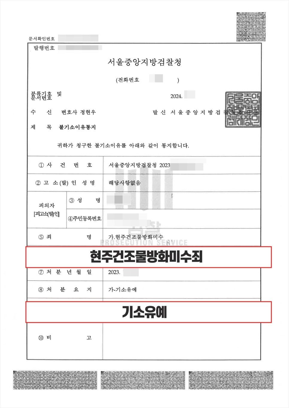 결국 이러한 점이 참작돼 의뢰인은 현주건조물방화 미수가 인정되었지만, 기소유예처분으로 선처를 받을 수 있었는데요.
