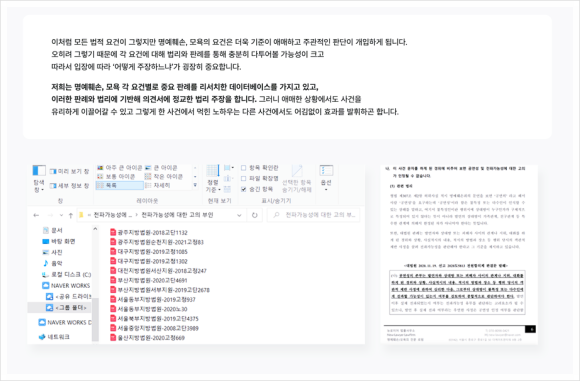 다시 말해 이 사건에서 무혐의를 만들기 위해 수천 건이 넘는 최신 판례를 살피고,